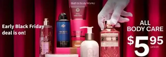 The Early Black Friday deal is on! Shop in store and get all body care for $5.95.